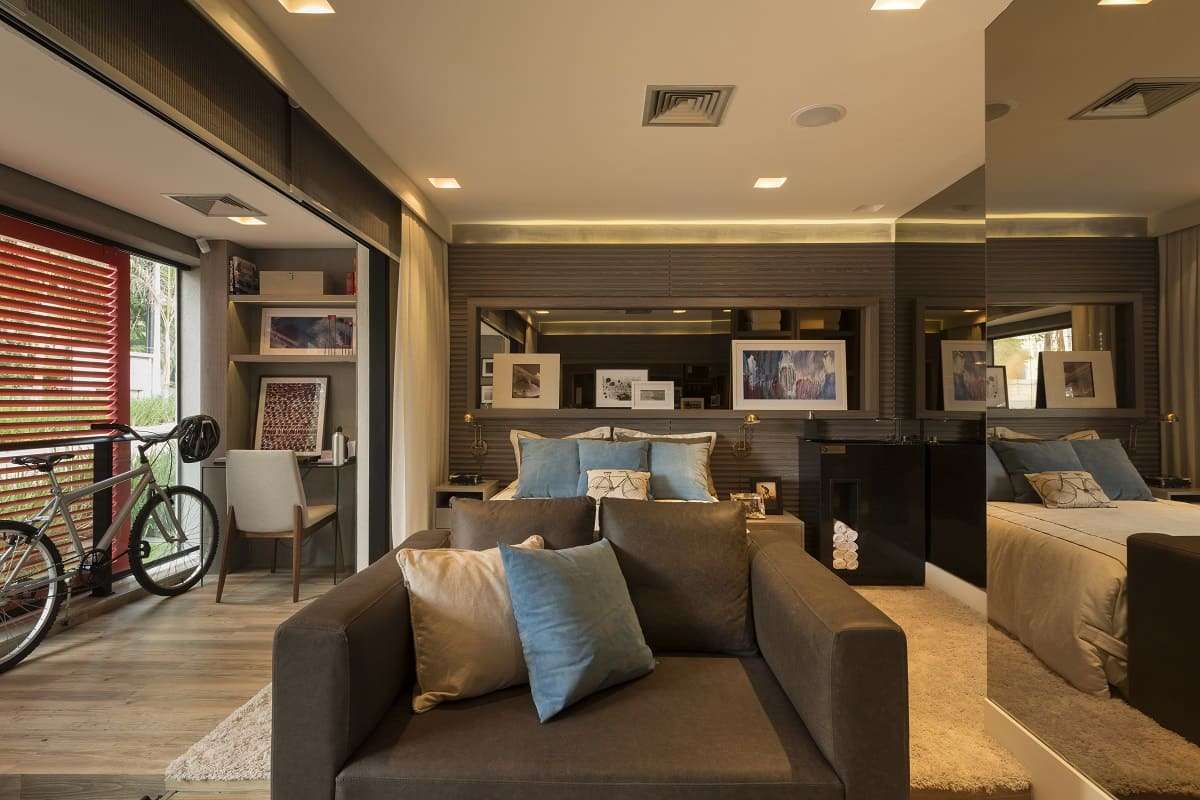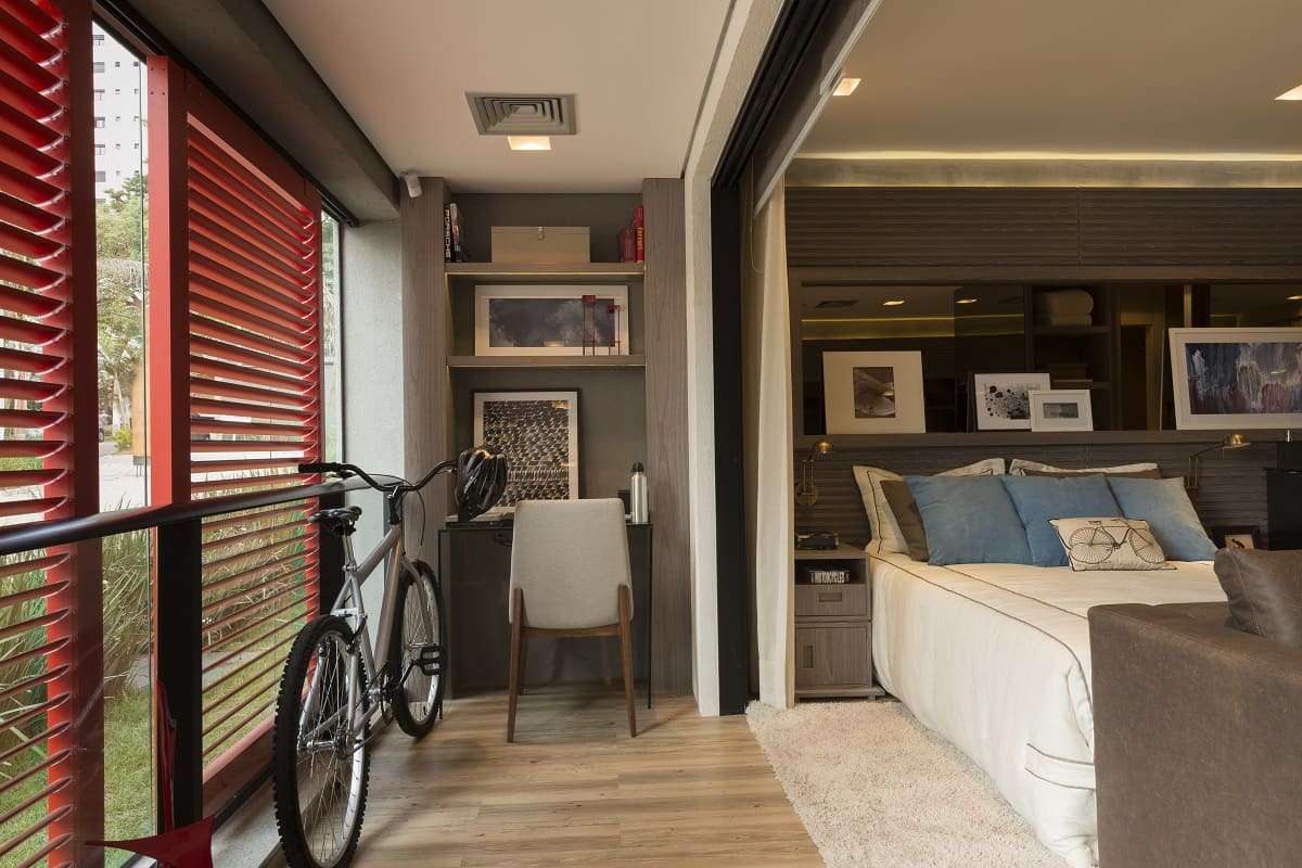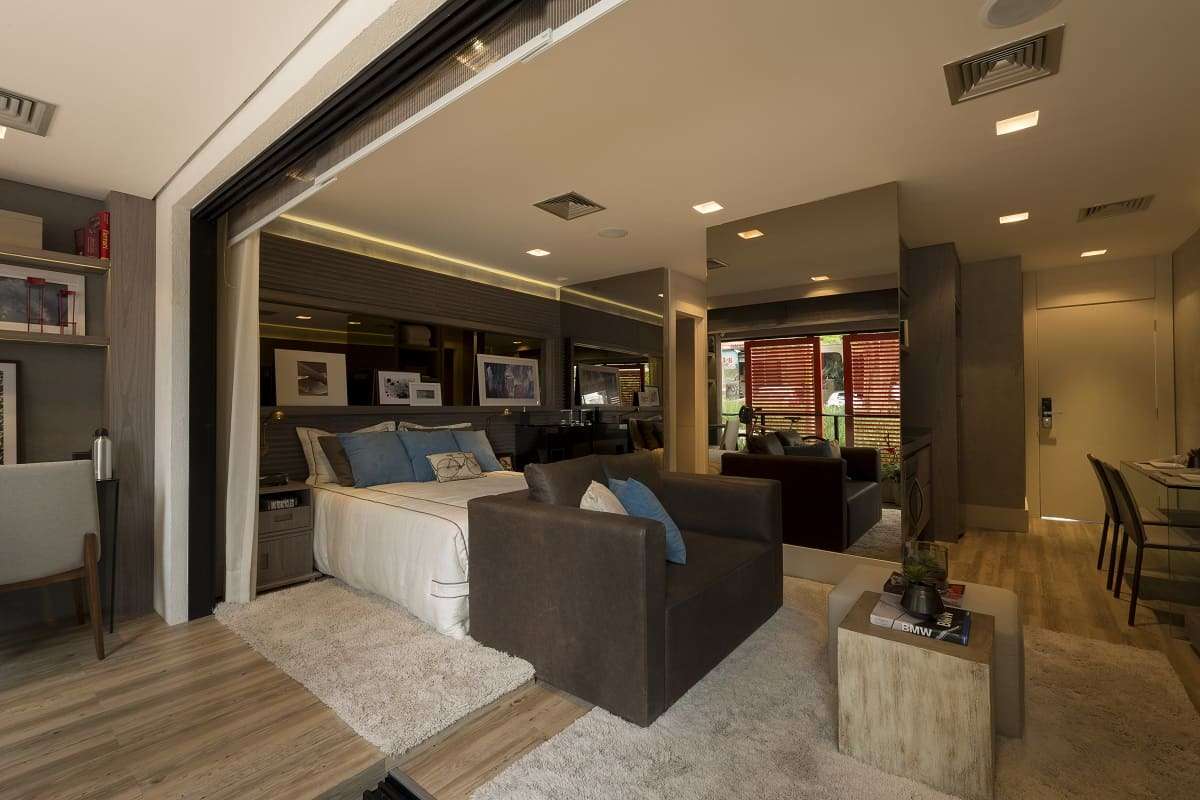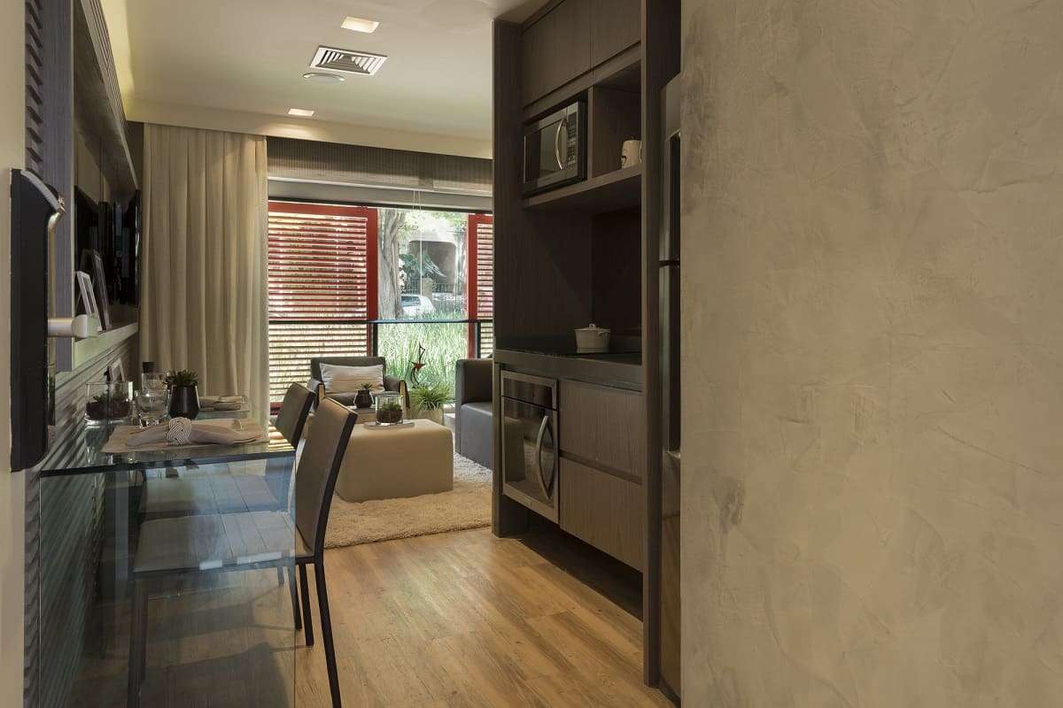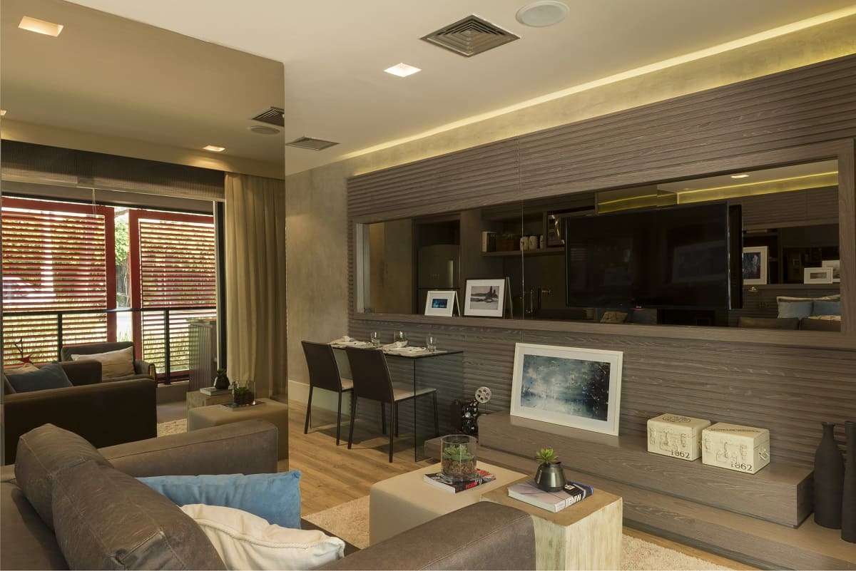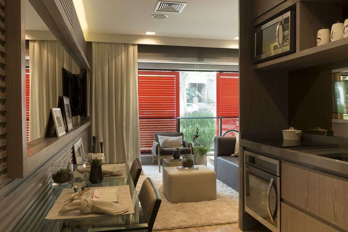 Tudo fica organizado em seu devido lugar. Assim, não há espaço para bagunça e o apartamento fica mais aconchegante.