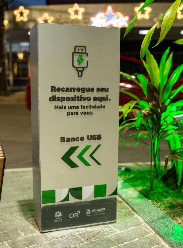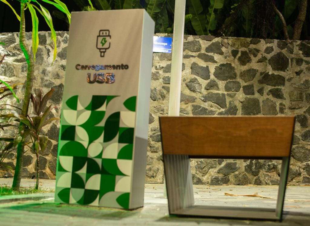 Soluções tecnológicas também estão presentes, a exemplo do banco com dispositivo de carregamento USB, e um totem para carregamento de carros elétricos, instalado na praça por meio de parceria com a BMW.